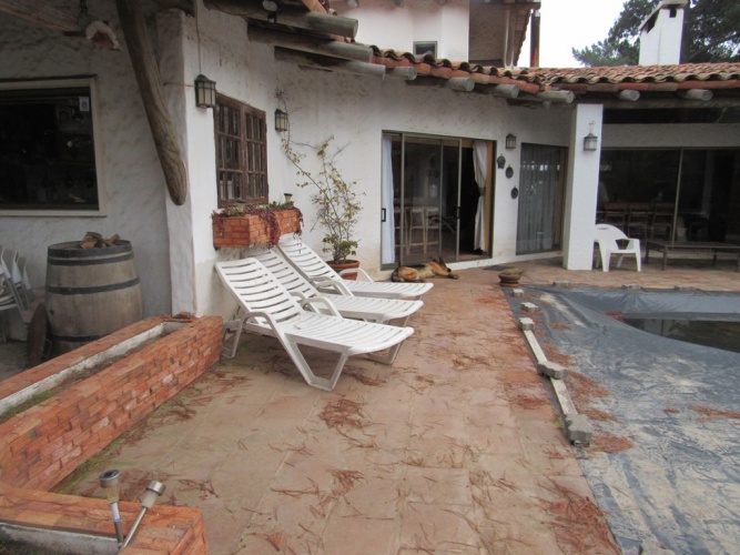 Parcela a pocos metros de la Av.Gastón Hamel en Reñaca incluye casa estilo chileno, con cielo de madera y vigas a la vista, amplio living-comedor con chimenea y bar,, 3 dormitorios, 3 baños, gran dormitorio principal en suite con jacuzzi y chimenea y walking closet,escritorio, terraza, pieza y baño de servicio independiente, cocina con lavadero aparte,cuenta con agua de Esval y luz. Piscina exterior,quincho,